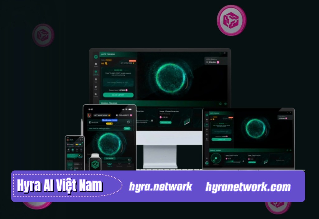 Tóm lược mô hình: Hyra AI (Hyra.network) thuê thiết bị thông minh huấn luyện AI và trả bằng coin Hyra AI, bạn có thể chuyển đổi thành tiền.