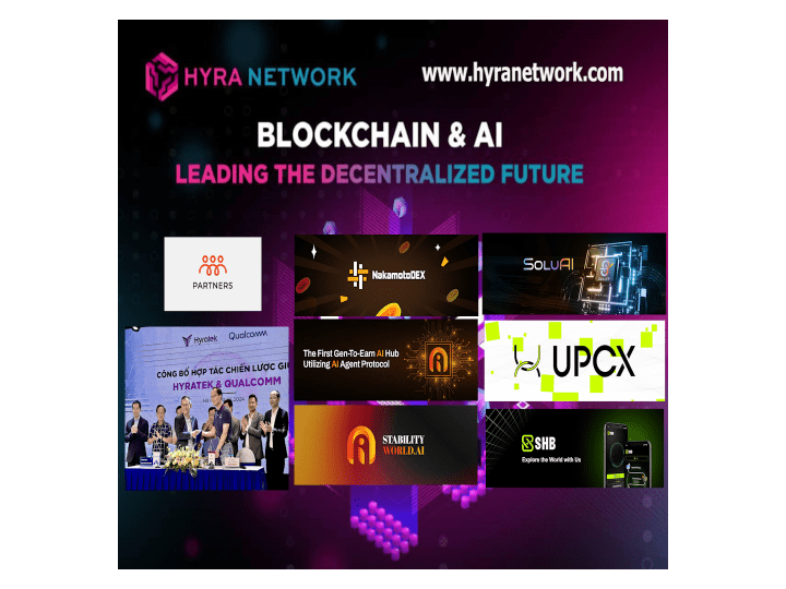 Trong thời gian cuối năm 2024 và đầu năm 2025 Hyra AI đã công bố hợp tác với nhiều đối tác trong nhiều lĩnh vực trên nền tảng blockchain, đặc biệt là AI.