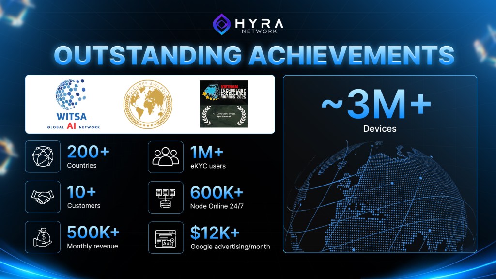 Hơn 3 triệu thiết bị được hỗ trợ bởi Mạng lưới Hyra